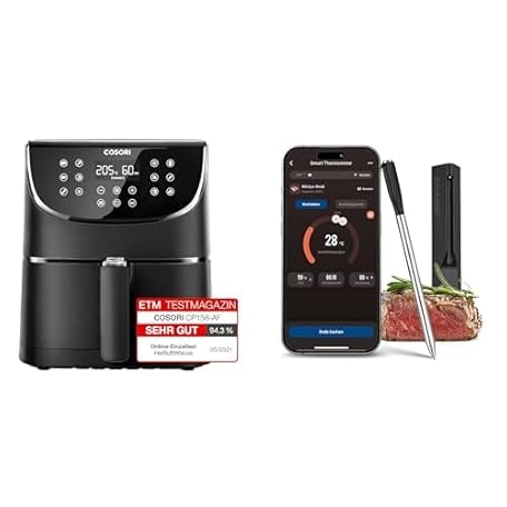 Sản phẩm COSORI Hot Air Fryer Airfryer, 11-in-1 Air Fryer XXL 5.5 L + COSORI First Smart Meat Thermometer đang được bán với giá ưu đãi là $211.7107 tại nước Đức.