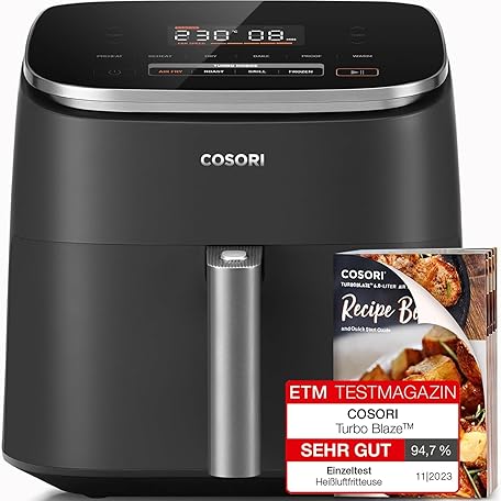 Sản phẩm COSORI Hot Air Fryer XXL Turbo Blaze, 6L Airfryer with 5 Speed Levels & Kettle Glass with Upgrade Stainless Steel Filter and Inner Lid đang được bán với giá ưu đãi là $235.5272 tại nước Đức.