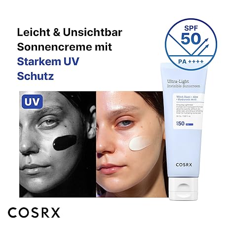 Sản phẩm COSRX Ultra Light Invisible Sun Cream SPF 50 Transparent Sun Protection with Hyaluronic Acid, No White Veil, Non-Greasy, Strong UV Protection, Sun Care, Korean Sunscreen, 50 ml đang được bán với giá ưu đãi là $19.6527 tại nước Đức.