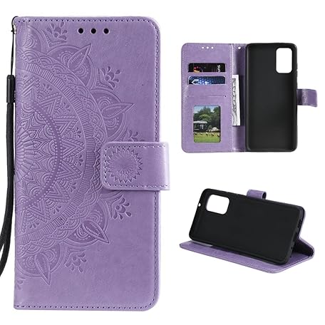 • CoverKingz Handy Cover kompatibel mit Samsung Galaxy A52 / A52 5G / A52s 5G - Handyschutz mit Kartenfach Klapphülle - Bookcase Hülle aufklappbar Motiv Mandala Lila