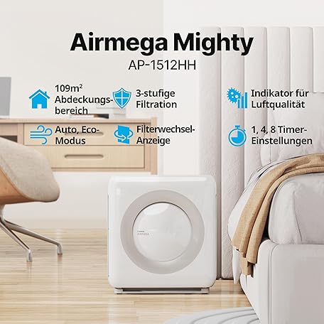 Thông tin sản phẩm COWAY Luftreiniger Allergiker, Energiesparender ECO-Modus, Entfernt 99,999% der schädlichen Partikel bis zu 0,01 µm, für Allergie (ECARF Siegel) Staub Pollen, CADR 421m³/h, ap-1512hh MIGHTY (Weiß)