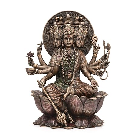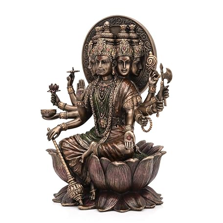 CraftVatika Goddess Gayatri Devi Idol Bronze Finish Mother of Vedas Sitting on Lotus Statue Religious Idol Temple Puja Decoration Size 10 x 7.5 Inches