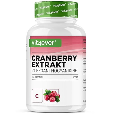 Cranberry Extract + Vitamin C - 365 Cranberry Capsules - 25:1 Extract, Equivalent to 25,000 mg - 6% Proanthocyanidins - High Dose, No Unwanted Additives, Vegan