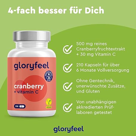 Thương hiệu gloryfeel là cái tên nổi tiếng được rất nhiều khách hàng trên thế giới chọn lựa. Với kiểu dáng đẹp mắt, sang trọng, sản phẩm Cranberry Extract with Vitamin C - 50:1 Extract (Equivalent to 25,000 mg Cranberries per Daily Dose) - 210 Capsules - Laboratory Tested, Vegan, High Dose, No Unwanted Additives là sự lựa chọn hoàn hảo nếu bạn đang tìm mua một món cho riêng mình.