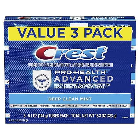 Sản phẩm Crest Pro Health Advanced Deep Clean Toothpaste, Mint, 432g, Pack of 3 đang được bán với giá ưu đãi là $63.6778 tại nước Đức.