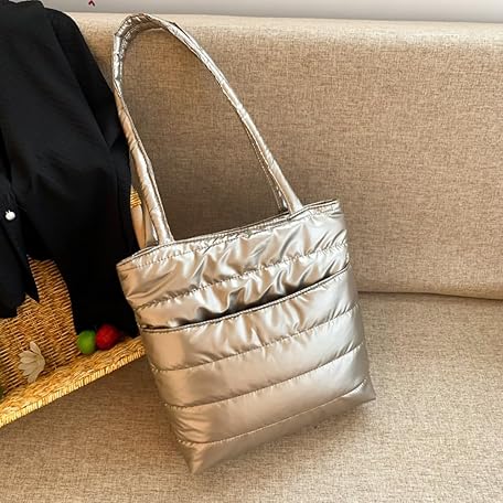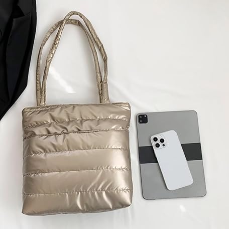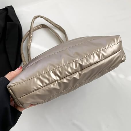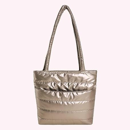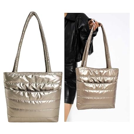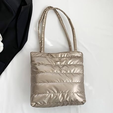 Thông tin sản phẩm CRGANGZY Damen-Umhängetasche, gesteppt, großes Fassungsvermögen, Reißverschluss, Umhängetasche, lässig, leicht, Handtasche, Winter-Dating-Tasche (Gold)