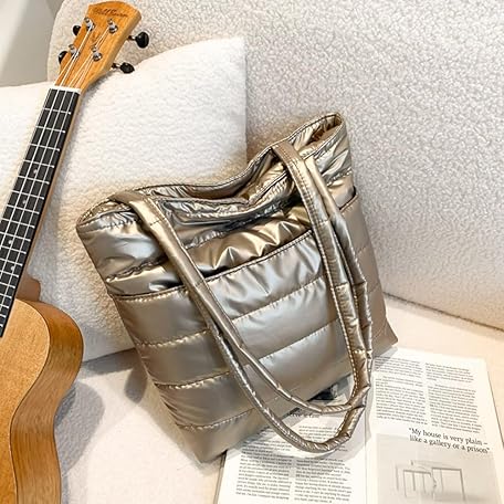 Sản phẩm CRGANGZY Damen-Umhängetasche, gesteppt, großes Fassungsvermögen, Reißverschluss, Umhängetasche, lässig, leicht, Handtasche, Winter-Dating-Tasche (Gold) đang được bán với giá ưu đãi là $12.2625 tại nước Đức.