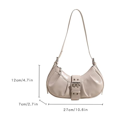 Thông tin sản phẩm CRGANGZY PU-Leder-Umhängetasche Y2K for Damen, kleine Clutch-Handtasche mit verstellbarem Riemen, Clutch-Geldbörse, Schnalle, plissierte Unterarm-Geldbörse for Reisen, Pendeln (weiß)