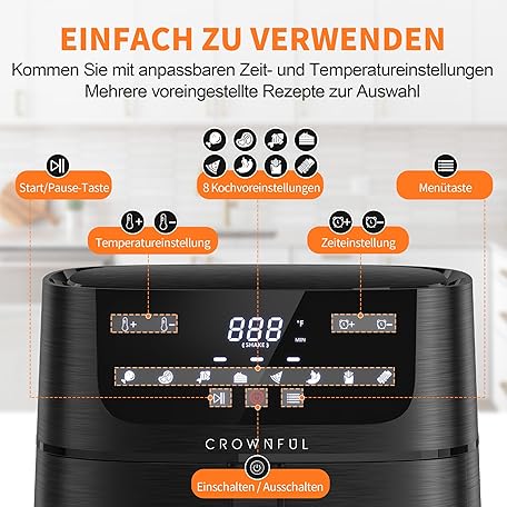 Thông tin sản phẩm CROWNFUL Air Fryer, 6.2 L, XXL Hot Air Fryer, Electric 8-in-1 Oilless Stove, Hot Air Fryers with LCD Touchscreen and 8 Presets, Precise Temperature Control, Nonstick Basket