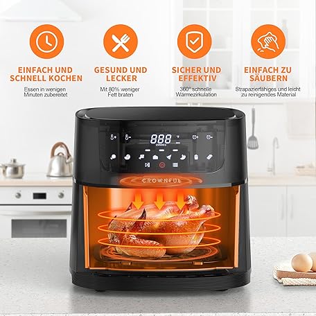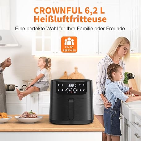 Sản phẩm CROWNFUL Air Fryer, 6.2 L, XXL Hot Air Fryer, Electric 8-in-1 Oilless Stove, Hot Air Fryers with LCD Touchscreen and 8 Presets, Precise Temperature Control, Nonstick Basket đang được bán với giá ưu đãi là $78.0658 tại nước Đức.