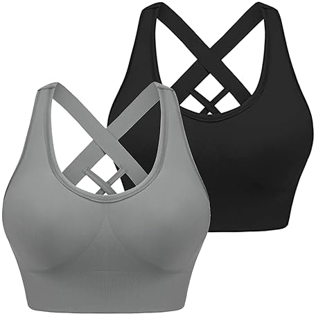 CSKJ Sport BH, Damen Mittle Halt Sport BH Crossback Push up Yoga Bra Nahtlose Ohne Buegel mit Abnehmbaren Gepolstert für Fitness Lauf Joggen