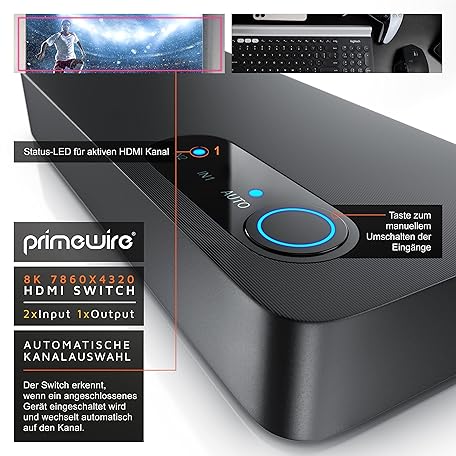 Sản phẩm CSL - HDMI Splitter 8k - 1 in 2 Out - 8k 60Hz 4k 120Hz - Automatic Switching - UHD HDMI Splitter Switch Compatible with Fire TV Stick UHD TV PS4 PS5 Xbox DVD Blu-Ray đang được bán với giá ưu đãi là $25.2008 tại nước Đức.