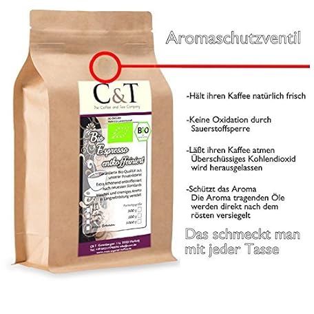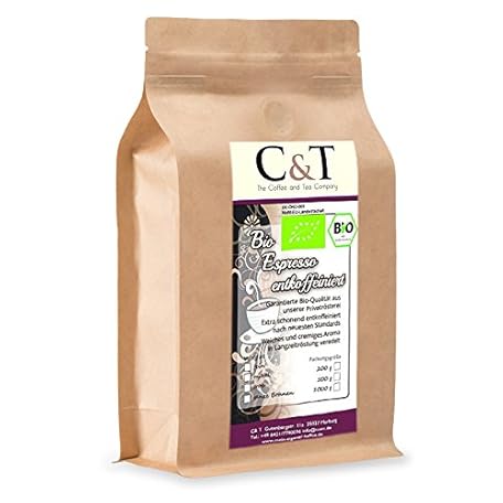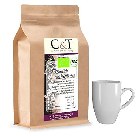 Sản phẩm C&T Organic Espresso Crema | Cafe Decaffeinated 100% Arabica 1000 g Decaffeinated Coffee Whole Beans in Kraft Paper Bag đang được bán với giá ưu đãi là $40.984 tại nước Đức.