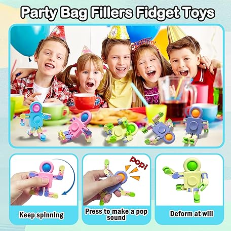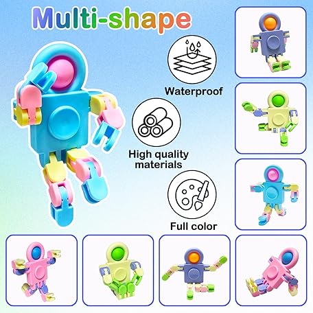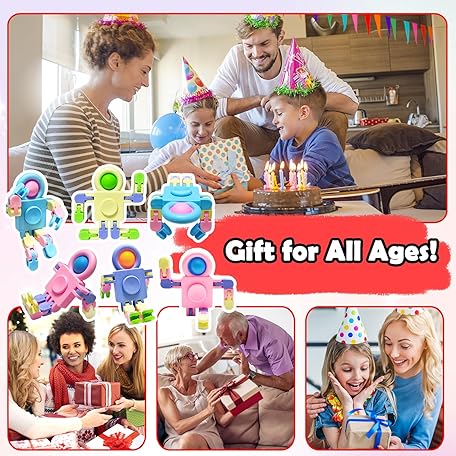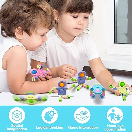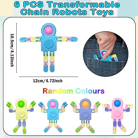 Thông tin sản phẩm Cuackamily 6 Pieces Bubble Pop Fidget Toy, Fingertip Toy, Transformable Chain Robot Sensory Stress Relief Toy Pop Party Gifts Gift Bag Filler for Children Adults (Random Colour)
