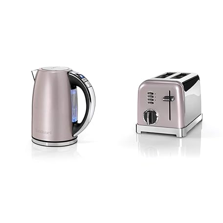 Thông tin sản phẩm Cuisinart CPK17PIE Kettle, Multi Temp, 3 kW, Stainless Steel, 1.7 L Capacity, Vintage Pink & 2-Slot Toaster with 6 Browning Levels and Defrost, Reheat and Stop Function, Pink