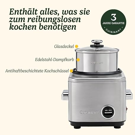 Sản phẩm Cuisinart Rice Cooker 400 g Cup, Rice & Grain Multi Cooker, Steaming & Keeping Warm, Retractable Cable, Stainless Steel Steamer Pot, BPA-Free, Measuring Cup & Rice Spoon, Includes Recipe Book Cuisinart Rice Cooker 400 g Cup, Rice & Grain Multi Cooker, Steaming & Keeping Warm, Retractable Cable, Stainless Steel Steamer Pot, BPA-Free, Measuring Cup & Rice Spoon, Includes Recipe Book đang được bán với giá ưu đãi là $111.6814 tại nước Đức.