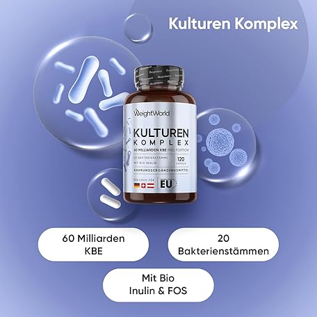 Sản phẩm Culture Complex with 60 Billion CFU - 20 Bacterial Strains and Organic Inulin - 120 Vegan Capsules - Bacterial Cultures with Bifidobacterium, Lactobacillus Gasseri & Reuteri - 2 Months Supply đang được bán với giá ưu đãi là $13.298 tại nước Đức.