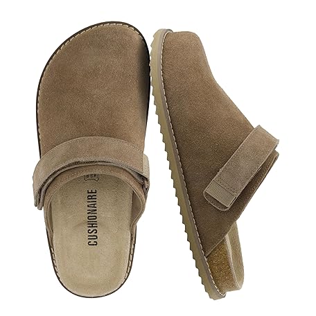 CUSHIONAIRE Damen Boulder Clog aus echtem Wildleder mit Drehriemen - leichte EVA-Sohle, Innensohle aus Memory-Schaum, breite Breiten erhältlich, Braungrau - Taupe Suede, 37 EU