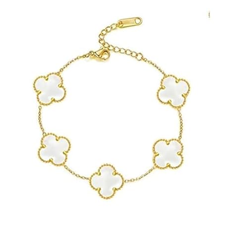 Thông tin sản phẩm CustomEmotions Clover Bracelet - Gold, Waterproof, Women's Stainless Steel Bracelet 17-20 cm, Jewellery for Mother & Daughter with Pendants, Perfect Gift for Christmas, Mother's Day & Other Occasions (White Gold)