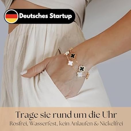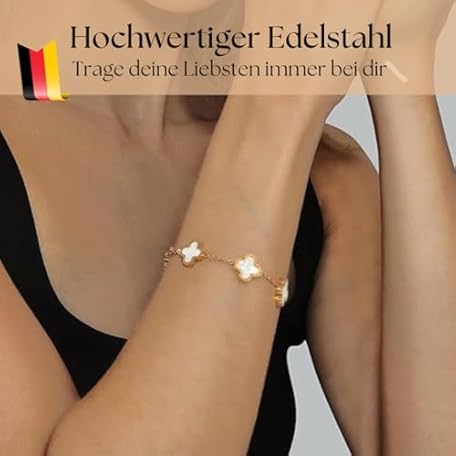 Sản phẩm CustomEmotions Clover Bracelet - Gold, Waterproof, Women's Stainless Steel Bracelet 17-20 cm, Jewellery for Mother & Daughter with Pendants, Perfect Gift for Christmas, Mother's Day & Other Occasions (White Gold) đang được bán với giá ưu đãi là $15.7505 tại nước Đức.