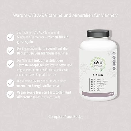 Sản phẩm CYB A-Z vitamins and minerals for men, with magnesium, zinc, selenium and more, 1 x 365 tablets đang được bán với giá ưu đãi là $11.5104 tại nước Đức.