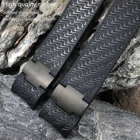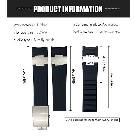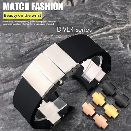 Thông tin sản phẩm CZKE 22-mm-Uhrenarmbänder aus Silikonkautschuk, passend für Ulysse Nardin Diver, Silber-Roségold-Faltschließe, Schwarz-Blau-Uhrenarmband(Blue Plain)