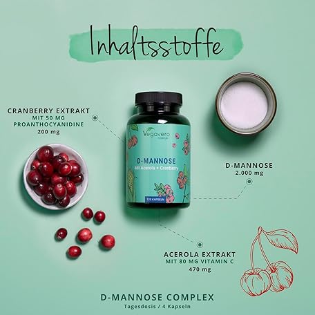 Sản phẩm D-Mannose + Cranberry Vegavero | 100% Natürlich | 2.000 mg pro Tag | Mit Vitamin C aus Acerola | Vegan & Ohne Zusätze | 120 Kapseln đang được bán với giá ưu đãi là $28.8523 tại nước Đức.