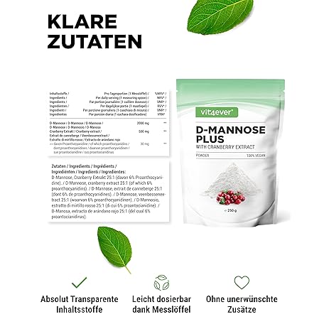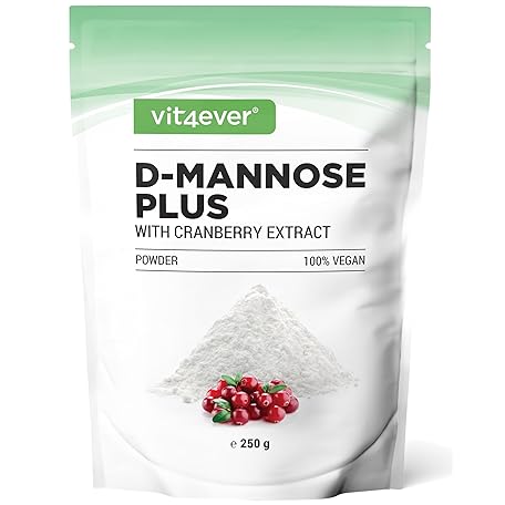 • D-Mannose Powder with Cranberry - 250 g Powder to Dissolve in Water - 100 Day Range - with Dosing Spoon - High Dosage, Vegan & Natural
