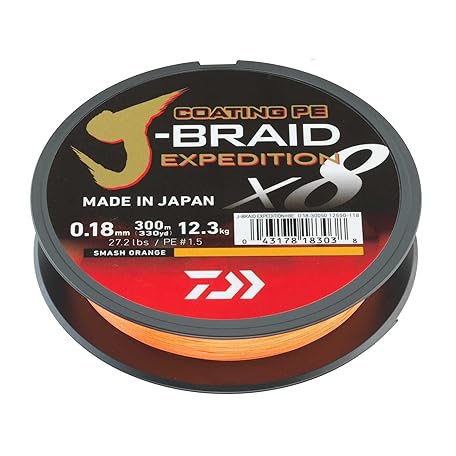 DAIWA J-Braid Expedition X8E, 300m, Smash Orange, Braided Fishing Line