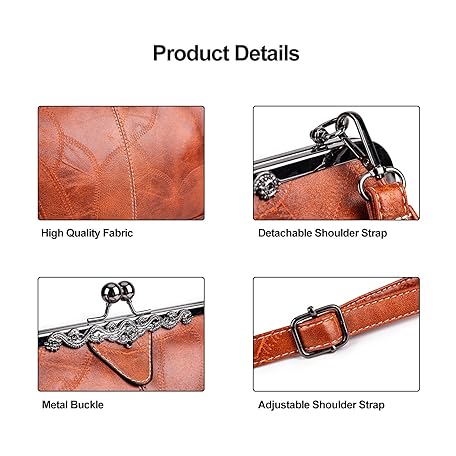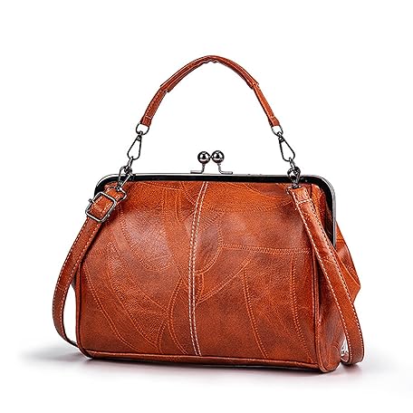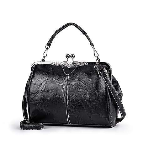 Damen Retro Handtasche, Frauen PU Leder Geldbörse Vintage Top Griff Tasche Kiss Lock Handtaschen Crossbody Schultertaschen (Schwarz)
