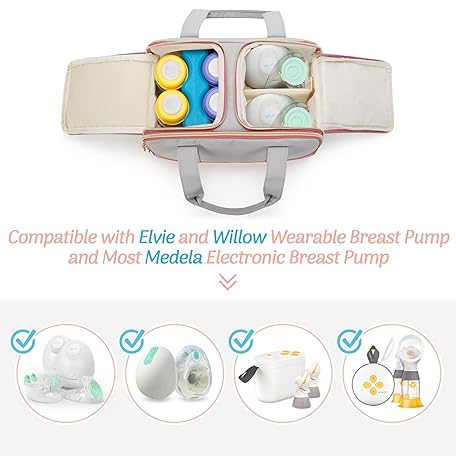 Thông tin sản phẩm Damero Portable Breast Pump Carry Bag with Cooler Compartment Compatible with Willow and Elvie Breast Pump, Carry Bag for Portable Breast Pump, Pump Parts and Ice Pack, Patented Design