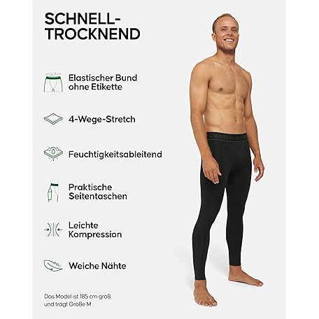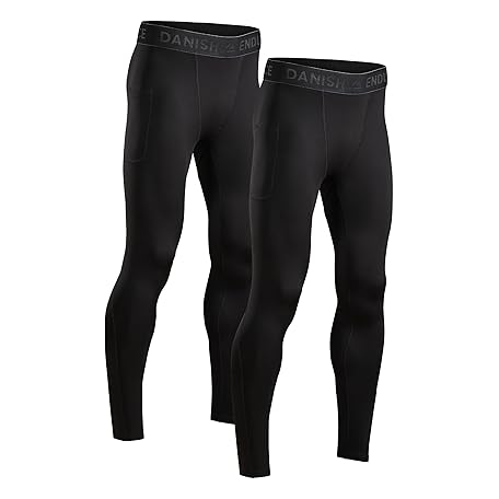 DANISH ENDURANCE Pack of 2 men's long running trousers, compression trousers, sports leggings with pockets, winter sports trousers, running tights, lightweight and comfortable functional trousers
