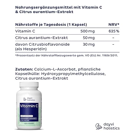 Sản phẩm Dayvi Holistics® Vitamin C High Dose & Buffered [365 Capsules] - Vitamin C 500mg per Daily Dose đang được bán với giá ưu đãi là $29.0703 tại nước Đức.