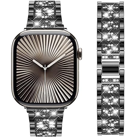 DEALELE Armband Kompatibel mit Apple Watch 42mm 41mm 40mm 38mm, Bling Glitzer Diamant Metall Ersatz Armbänder für iWatch Series 10/9 / 8/7 / 6/5 / 4/3 / SE Damen Herren, Schwarz
