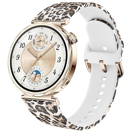 DEALELE Armband Kompatibel mit Huawei Watch GT5 Pro 42mm / GT5 41mm / GT4 41mm / Garmin Venu 3S / Fossil Women's Gen 6, Damen 18mm Weiche Gedrucktes Muster Silikon Ersatz Armbänder, Leopard