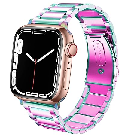 DEALELE Armbänd Kompatibel für iwatch 38mm 40mm 41mm 42mm, Solides Edelstahl Metall Ersatz Armband für Apple Watch Series 10/9 / 8/7 / 6/5 / 4/3 / SE Damen Herren, Regenbogen