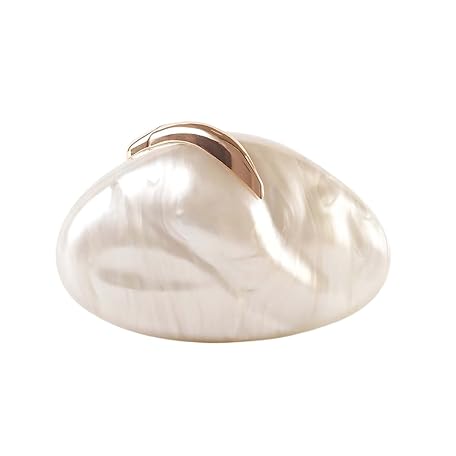 DEBIMY Trendige Damen-Umhängetasche aus Metall, schick, oval, Ei, Abendtasche, Geldbörse mit Kette, für Freizeit, Party, Abschlussball, Beige