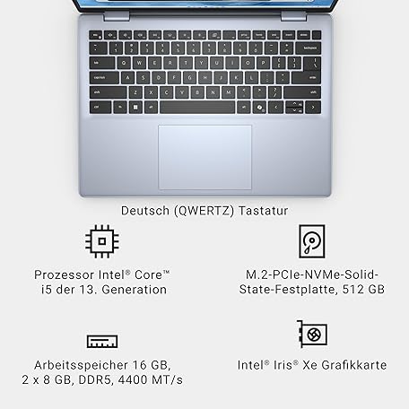 Thông tin sản phẩm Dell Inspiron 14 5440 Laptop 14 Inch 16:10 FHD+ Display, Intel Core i5-1334U, 16GB RAM, 512GB SSD, Intel Iris Xe, Windows 11 Home, Fingerprint Reader, Backlight - German (QWERTZ), Ice Blue