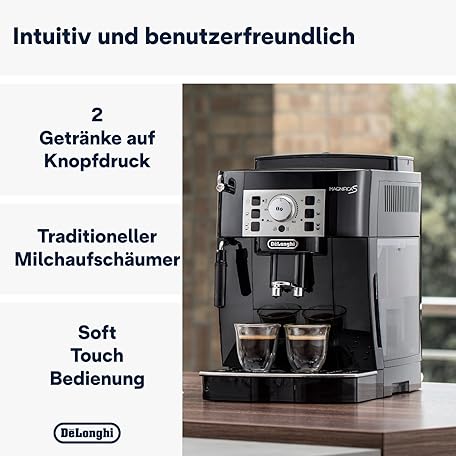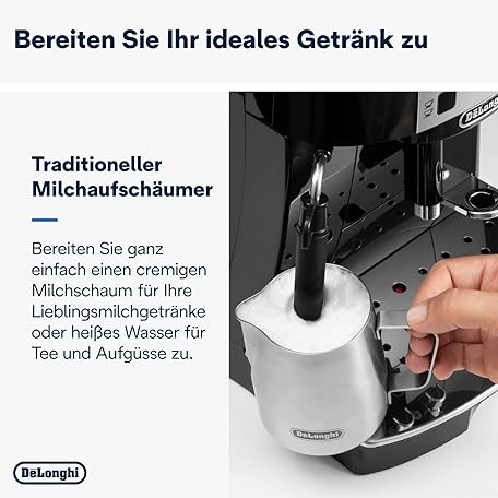 Thông tin sản phẩm De’Longhi Magnifica S - Perfetto Kaffeevollautomat mit klassischem Milchaufschäumer, Espresso- und Cappuccino Kaffeemaschine, Bedienfeld mit Tasten, Schwarz (ECAM22.110.B)