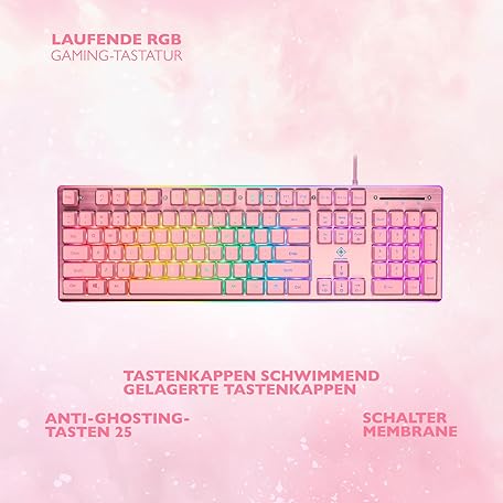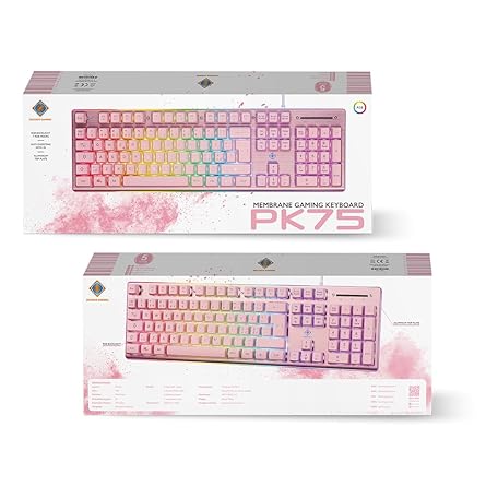 Thông tin sản phẩm DELTACO GAMING PK75 - Gaming Keyboard (RGB Lighting, 100%, 105 Keys, German Layout QWERTZ) - Pink/Pink