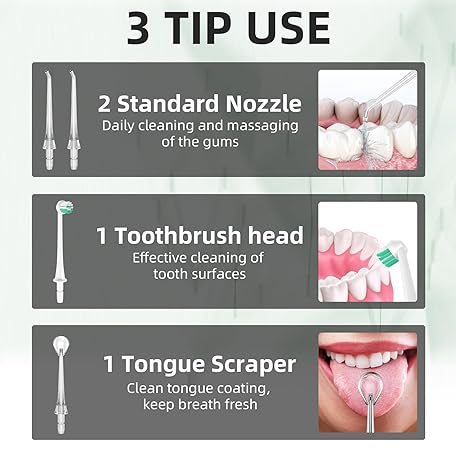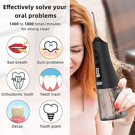 Sản phẩm Dental Floss for Teeth Cleaning, 9 Modes Rechargeable Oral Irrigator, 4 Tips, Powerful Battery Life, Water Toothpick, IPX7 Waterproof, 350ml Water Tank for Home and Travel (Black) đang được bán với giá ưu đãi là $45.3658 tại nước Đức.