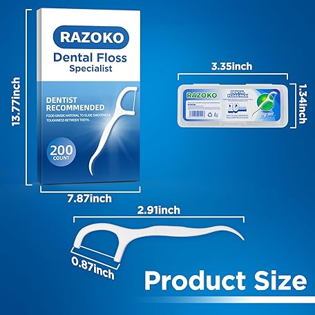 Thương hiệu RAZOKO là cái tên nổi tiếng được rất nhiều khách hàng trên thế giới chọn lựa. Với kiểu dáng đẹp mắt, sang trọng, sản phẩm Dental Floss Sticks Pack of 200 (2 Reusable Cases) - Tooth Cleaner for Travel, Family & On the Go - High-Strength Tooth Thread with Non-Slip Handle là sự lựa chọn hoàn hảo nếu bạn đang tìm mua một món cho riêng mình.