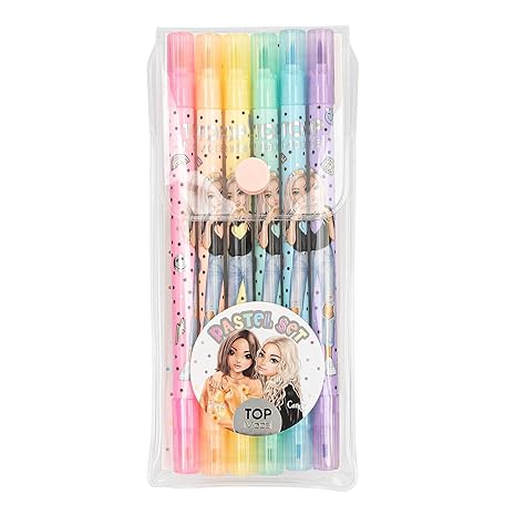 Depesche TOPModel 13385 Fibre-Tip Pen Set with 6 Pastel Colours in Case, Double Felt Tip Pens with One Wide and One Thin Page Each