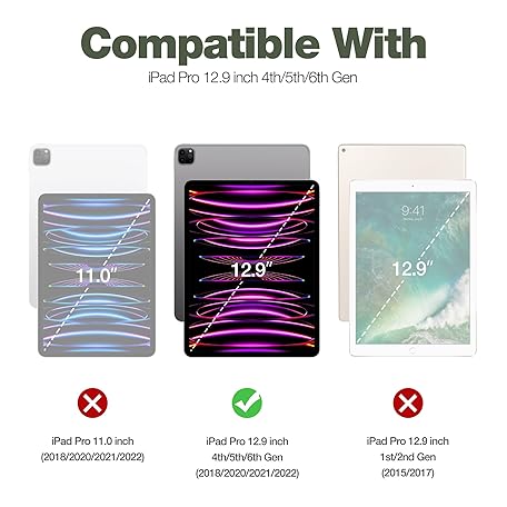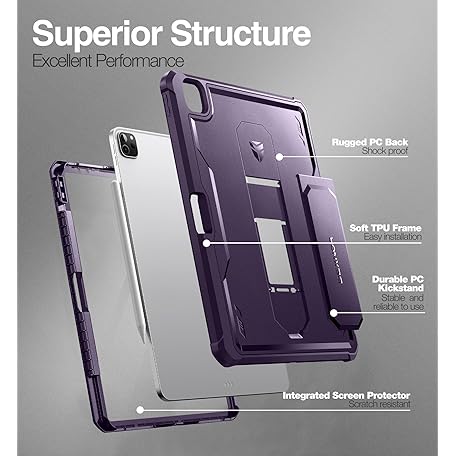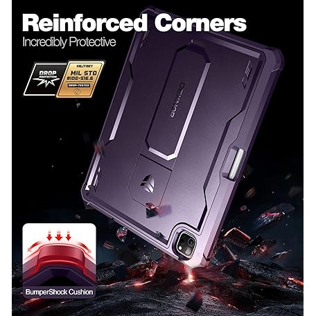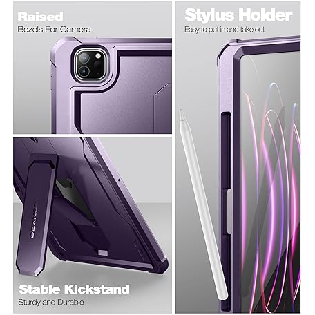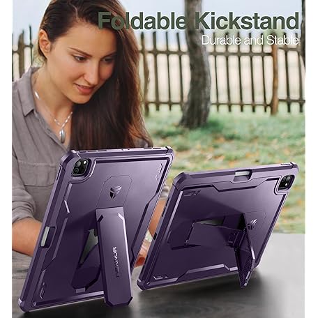 • Dexnor Hülle Kompatibel mit iPad Pro 12.9 Generation (2022/2021/2020), 360 Schutz Ganzkörper Fall mit eingebautem Displayschutz, Schutzhülle Bumper Fall Kompatibel mit iPad 12.9" - Lila