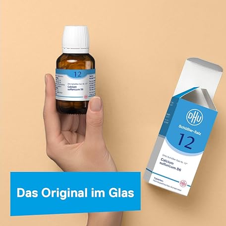 Thông tin sản phẩm DHU Schüßler Salt No. 12 Calcium Sulfuricum D6 - The Mineral Salt of the Joints - The Original - Environmentally Friendly in Pharmaceutical Glass, Pack of 200 Tablets with Tablet Case