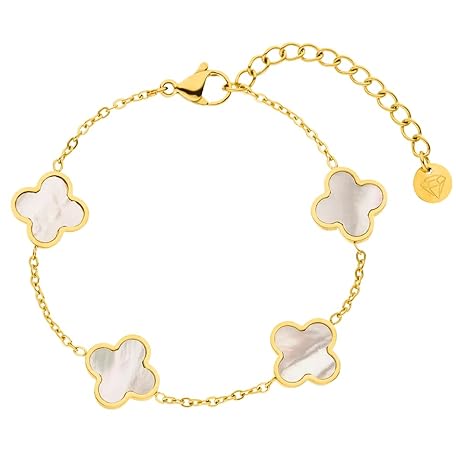 DIAMOND MODE Clover Mother of Pearl Bracelet 18 Carat Gold-Plated 16 cm + 4 cm Surgical Steel Clover Leaf