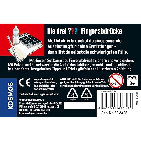 Sản phẩm Die drei Kosmos Fingerprints 632335, Detective Gadget, Exciting Detective Toy Set for Children from 8 Years, Gift for Birthday, Souvenir, Black đang được bán với giá ưu đãi là $6.3111 tại nước Đức.