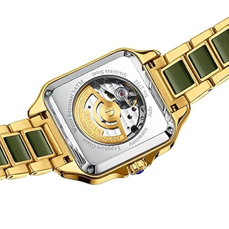 Thông tin sản phẩm Diella Eckige Armbanduhr Männer, Herren Automatik Uhren Datumsanzeige, Schwarz Grün Jade & Edelstahl Herren Armband Uhren Wasserdicht (Modell: AD6027G)