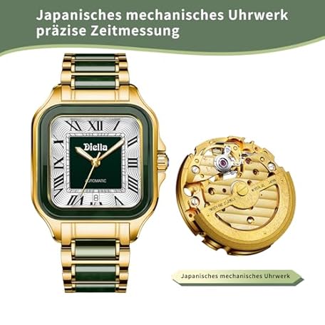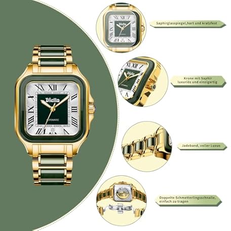 Sản phẩm Diella Eckige Armbanduhr Männer, Herren Automatik Uhren Datumsanzeige, Schwarz Grün Jade & Edelstahl Herren Armband Uhren Wasserdicht (Modell: AD6027G) đang được bán với giá ưu đãi là $669.4671 tại nước Đức.
