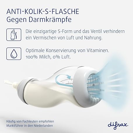 Sản phẩm Difrax Anti-Colic Glass Baby Bottles, Newborn Baby Bottle, Baby Bottle 0-6 Months, Good Acceptance - 310 ml White, BPA-Free, Developed in Collaboration with Medical Experts đang được bán với giá ưu đãi là $26.814 tại nước Đức.